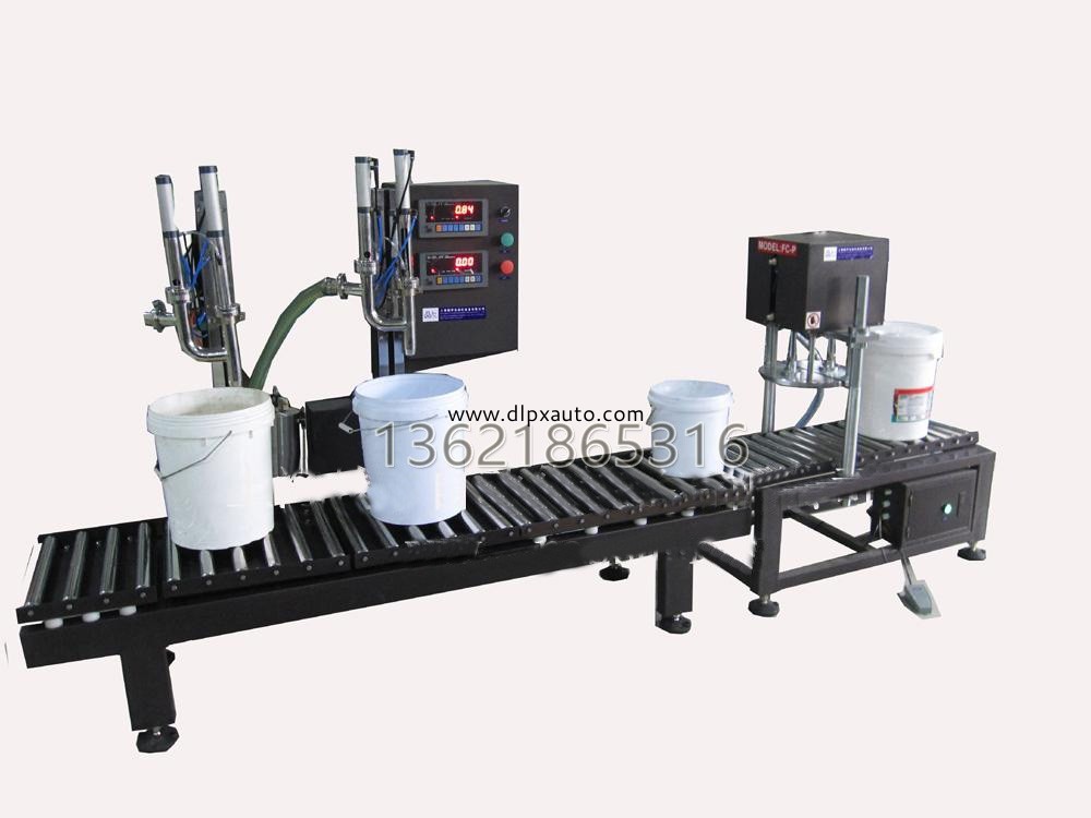 稱重液體灌裝機(jī)+塑料桶蓋壓蓋機(jī)