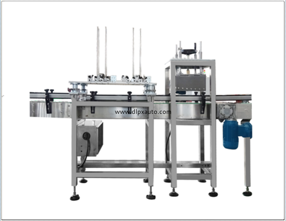 設備準確定位桶后將蓋自動分離逐個放于桶口位置,桶位于壓蓋工位時,通過光電準確定位后,PLC控制電機達到精確快速的壓蓋,達到不歪蓋、不漏液、密封嚴實的效果。