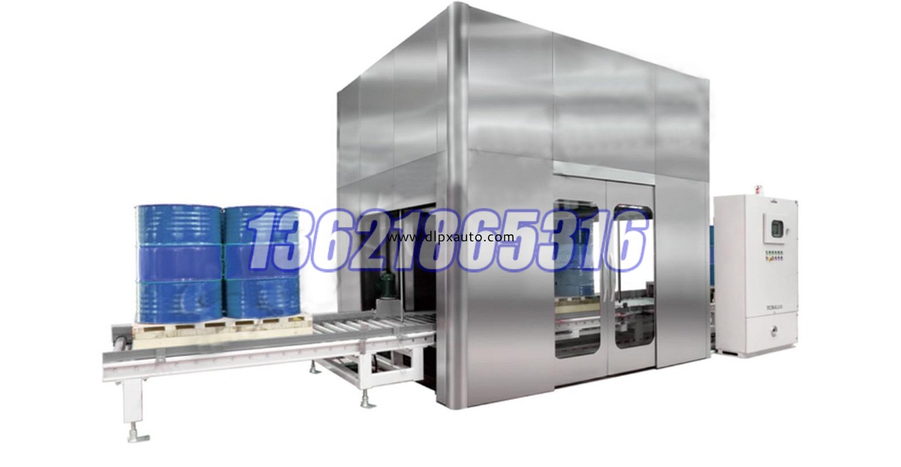 200L/IBC 全自動開灌旋一體機設(shè)備概述:本機專門針對200L(托盤式)/IBC共用的的液體包裝而設(shè)計的智能化包裝系統(tǒng)。本設(shè)備采用視覺尋口,實現(xiàn)自動開蓋、自動下潛快滿速灌裝、自動接漏、自動封螺紋蓋等全流程自動化的包裝。主機采用環(huán)保外框,可視窗,進出桶自動升降移門,灌裝時可形成封閉空間。本機電氣控制部分由PLC可編程控制器、稱重模塊、視覺系統(tǒng)等組成,控制能力強,自動化程度高。具備無桶不灌裝,對不