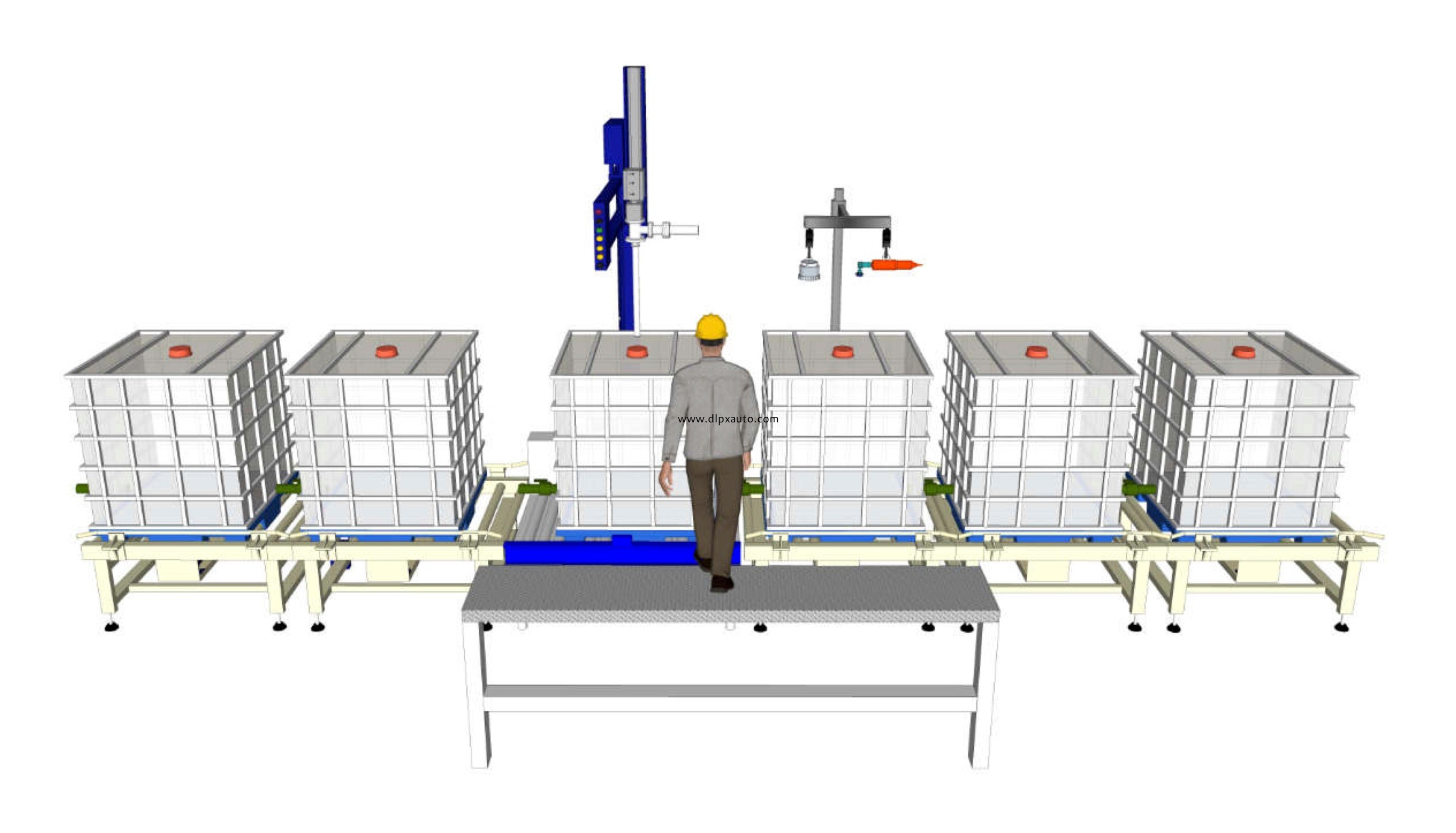 噸桶液體灌裝機,自動完成進桶、灌裝、出桶。適用于各種有泡沫、無泡沫液體物料的灌裝。灌裝方式液面下、液面上可選。設計獨特的灌裝頭易于操作,灌裝快速,精確。是化工行業(yè)噸桶灌裝的***設備。