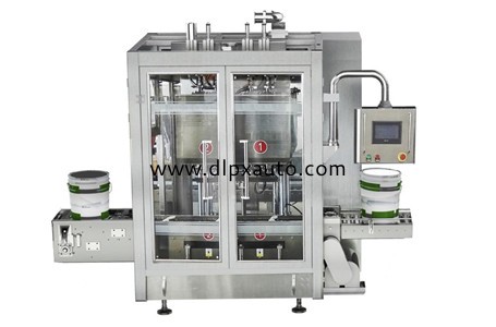 (4)自動識別涂料桶到位,針對50KG塑料桶的特殊桶蓋,機械手自動抓取蓋子,自動上蓋,自動封口。