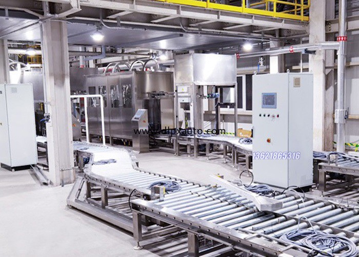 200L-D全自動(dòng)系列,可實(shí)現(xiàn)人工上桶,自動(dòng)輸送進(jìn)桶,自動(dòng)對(duì)口松蓋,自動(dòng)定量灌裝,自動(dòng)擰蓋,自動(dòng)檢測(cè)擰蓋,重桶自動(dòng)出桶的自動(dòng)化生產(chǎn)流程。D系列采用機(jī)電與視覺相結(jié)合的對(duì)口技術(shù),在空桶至松蓋工位時(shí),自動(dòng)轉(zhuǎn)桶對(duì)口,完成松蓋,在重桶至擰蓋工位時(shí),采用視覺校正技術(shù),自動(dòng)擰蓋后出桶。D系列自動(dòng)化程度高,通常需要自動(dòng)理蓋、蓋外蓋、貼標(biāo)、碼垛、纏繞等功能,故進(jìn)出桶輥道較長,占地面積較大??蛇x配防爆電機(jī),排風(fēng)抽氣設(shè)備,或理蓋機(jī),噴碼打印機(jī),貼標(biāo)機(jī),碼垛機(jī),纏繞機(jī)等周邊設(shè)備。