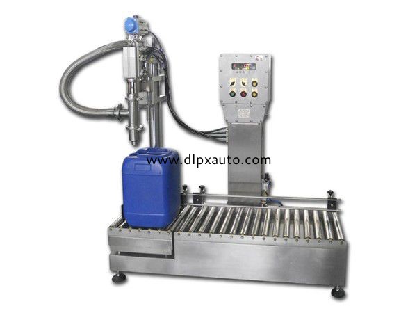 采用液面上/液面下兼用的灌裝方式,可充氮保護,可適用于多種液體物料的灌裝;設(shè)計可調(diào)節(jié)氣動球閥和噴槍,既提高了灌裝速度,同時又確保了灌裝精度;減少灌注完畢時殘液的滴漏;集氣罩可避免灌裝過程中揮發(fā)氣體的泄出,可以保護操作工。操作時,操作者僅需簡單地將空桶口對準噴槍嘴正下方;按下“啟動”按鈕,噴槍自動下降進入桶底,空桶自動去皮,充氮,然后正確地雙速灌裝;噴槍隨液面升高而升起,灌裝結(jié)束,噴槍自動提升至桶外,一個循環(huán)即告完成。