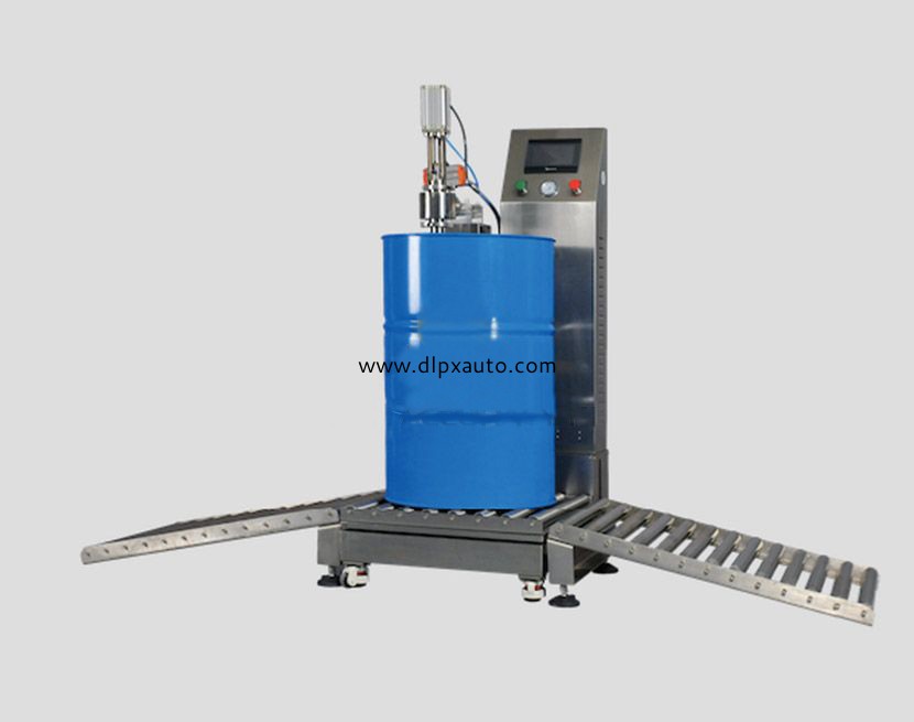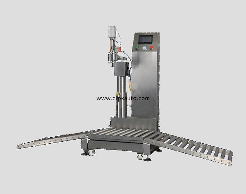 應(yīng)用案例高灌稱重式灌裝機(jī),原理是由稱重傳感器平臺(tái)在PLC的控制下設(shè)定計(jì)量.是高精度,高技術(shù)產(chǎn)品.是集機(jī)、電、儀一體化的新型機(jī)種,它改變了傳統(tǒng)流量計(jì)式灌裝機(jī)定量精度及無(wú)法對(duì)較粘液體的計(jì)量缺陷,是文明生產(chǎn)和國(guó)家明令規(guī)定淘汰杠桿秤后,融稱重與灌裝一體化的理想設(shè)備,灌裝時(shí)先去除皮重,操作者只需要將容器放入平臺(tái),桶口對(duì)準(zhǔn)灌裝咀,此時(shí)程序啟動(dòng),灌裝咀下降,打開(kāi)灌裝閥進(jìn)料, 物料在注入容器時(shí)先大量快速灌裝后再慢