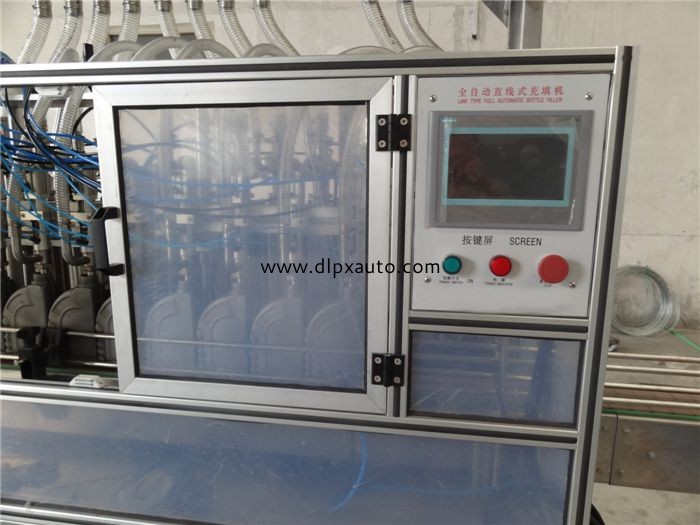 直線液體灌裝機本機采用PLC可編程控制,配以5.7英寸觸摸屏人機界面系統(tǒng)灌裝量的調(diào)節(jié)、灌裝速度快慢、整個設(shè)備 系統(tǒng)都在人機界面上輕輕-按就能
