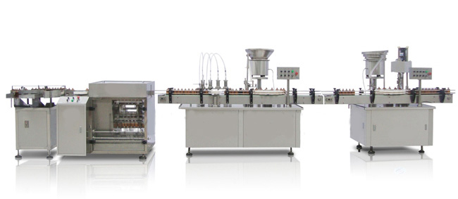 全自動液體灌裝生產(chǎn)聯(lián)動線由輸瓶機、直線式液體灌裝上塞機及多功能上蓋封口機組成,能自動完成理瓶、輸瓶、灌裝、上塞、理蓋、上蓋、封口等工序,高度符合GMP要求。組成聯(lián)動線的設備可單獨使用。