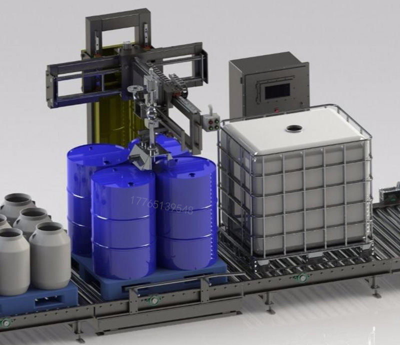直列式多功能裝桶機(jī)是一種專(zhuān)門(mén)用于液體產(chǎn)品自動(dòng)計(jì)量灌裝的設(shè)備,它能夠兼容多種桶型,如1000L的IBC噸桶和200L的桶。該設(shè)備采用伺服電機(jī)驅(qū)動(dòng)、容積式計(jì)量充填原理,實(shí)現(xiàn)了灌裝劑量的高精度。