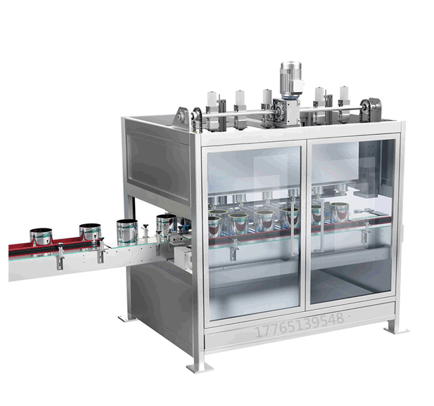 操作流程一般如下: 人工將桶口對位,使之位于噴正下方; 按下“啟動”按鈕,臺秤上的皮重被檢測以查驗(yàn)容器重量; 噴頭落下進(jìn)入桶內(nèi),系統(tǒng)檢測噴頭下降過程并去除皮重; 球閥和底閥打開,按預(yù)選的快、慢速進(jìn)行灌裝; 當(dāng)重量接近目標(biāo)值時,灌裝速度改變從快速轉(zhuǎn)到慢速; 當(dāng)灌裝重量達(dá)到目標(biāo)值減去提前量時,球閥和底閥關(guān)閉; 噴頭升起從桶內(nèi)抽出; 誤差在秤臺上被靜態(tài)檢測出并顯示,超限告警; 一桶完成,進(jìn)下一桶。 20L上料位液體灌裝機(jī)的優(yōu)勢主要體現(xiàn)在以下幾點(diǎn): 高度自動化:實(shí)現(xiàn)全過程自動化,降低人工操作強(qiáng)度; 定量準(zhǔn)確:采用高精度的電子計(jì)量系統(tǒng),確保灌裝量的精確度和穩(wěn)定性; 結(jié)構(gòu)緊湊:設(shè)備占地面積小,便于安裝和維護(hù); 適應(yīng)性強(qiáng):適用于多種物料和包裝材料; 安全性高:具備防爆、防滴漏、自動閥門控制等功能,滿足生產(chǎn)安全要求。 20L上料位液體灌裝機(jī)廣泛應(yīng)用于化工、食品、醫(yī)藥等行業(yè)中液體、顆粒物料、粉狀物料等的自動灌裝。優(yōu)勢與應(yīng)用