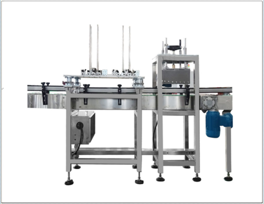 設(shè)備準(zhǔn)確定位桶后將蓋自動(dòng)分離逐個(gè)放于桶口位置,桶位于壓蓋工位時(shí),通過光電準(zhǔn)確定位后,PLC控制電機(jī)達(dá)到精確快速的壓蓋,達(dá)到不歪蓋、不漏液、密封嚴(yán)實(shí)的效果。