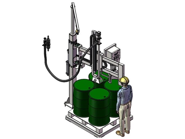 ·灌裝頭自動旋轉,自動伸入桶口