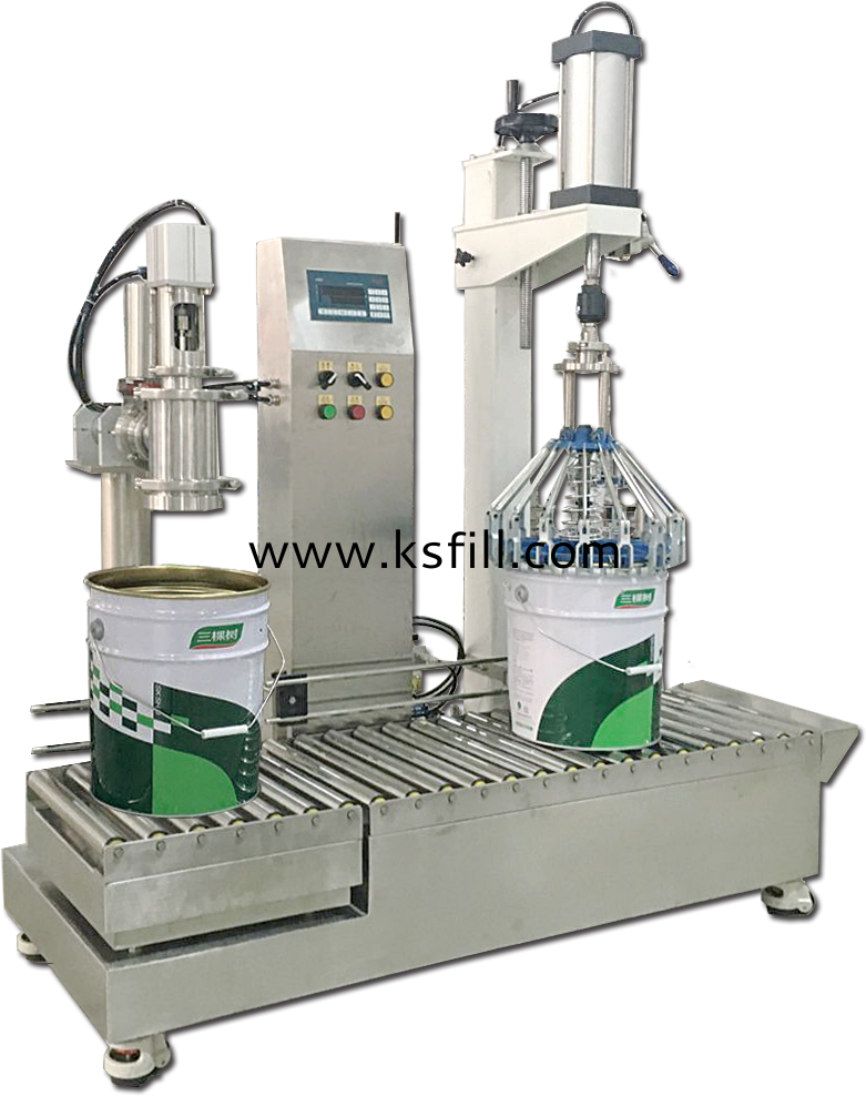 全自動(dòng)液體定量灌裝秤,采用液面上灌裝方式,適用于多種無泡沫液體物料的灌裝。設(shè)計(jì)獨(dú)特的廣志灌裝頭裝置易于操作,灌注快速、 ;并且 大限度地保證灌注完畢時(shí)殘液的滴漏。操作時(shí),操作者僅需簡(jiǎn)單設(shè)定好灌裝重量,按下 [啟動(dòng)]按鈕,再將擺放到空桶輸送機(jī)上。 液體灌裝機(jī)就會(huì)自動(dòng)將空桶輸送到位并推入磅臺(tái),然后自動(dòng)將灌裝頭插入桶內(nèi),并將空桶自動(dòng)去皮后打開灌裝閥門, 地雙速灌裝;灌裝結(jié)束,灌裝頭自動(dòng)提升至桶外,輸送機(jī)自動(dòng)將灌裝完成的包裝桶送出,人工旋蓋并擺放到托盤即告完成。