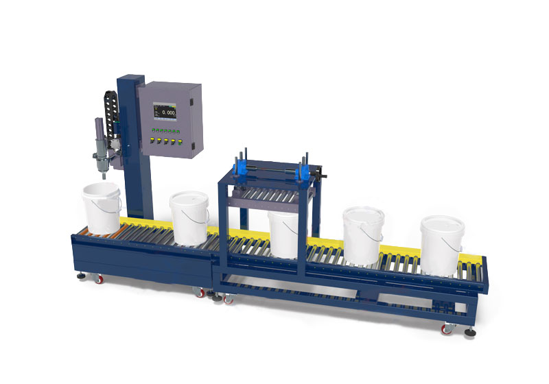 人工上空桶》自動定量灌裝》完成自動走桶至壓蓋位》人工放蓋》按啟動自動壓蓋》完成自動走重桶》》灌裝工