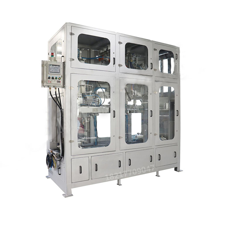 ■ 灌裝結(jié)束后,灌裝頭自動(dòng)提升至桶外,滴漏盤承接至灌裝頭底部,灌裝完成后,出艙門打開,灌裝完成的滿桶輸送出灌裝倉(cāng)后,出艙門關(guān)閉.至此一個(gè)循環(huán)完成.
