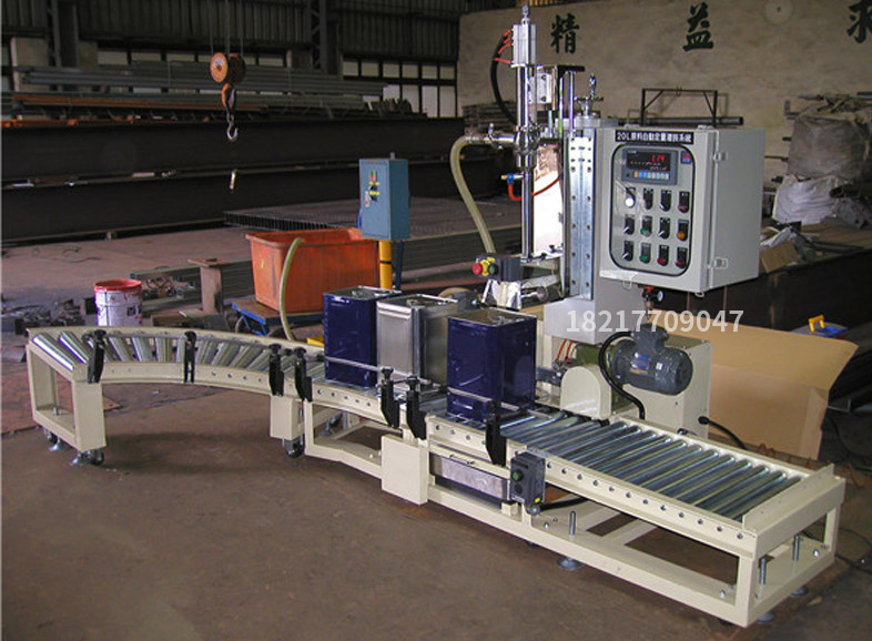 操作流程:人工放桶-自動灌裝-人工放蓋-自動壓蓋-成品存儲。