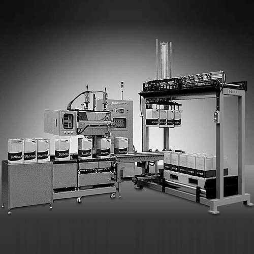 ■ 自動(dòng)定量灌裝罐和托盤裝載在一處