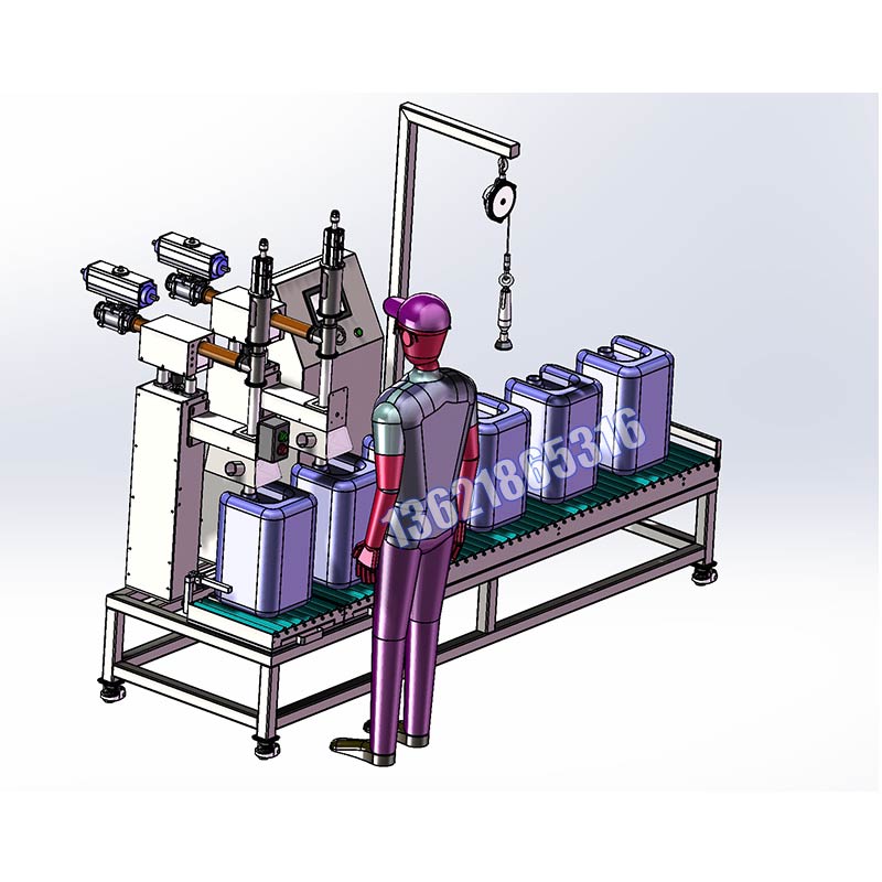 4、自動識別涂料桶到位,針對50KG塑料桶的特殊桶蓋,機械手自動抓取蓋子,自動上蓋,自動封口。