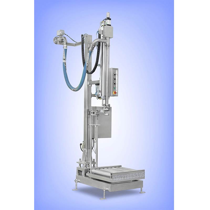 灌裝流程:人工上空桶--人工對(duì)孔--按啟動(dòng)按鈕灌槍自動(dòng)插入桶底--自動(dòng)定量灌裝--叉車叉走重桶--灌裝工序即完成。