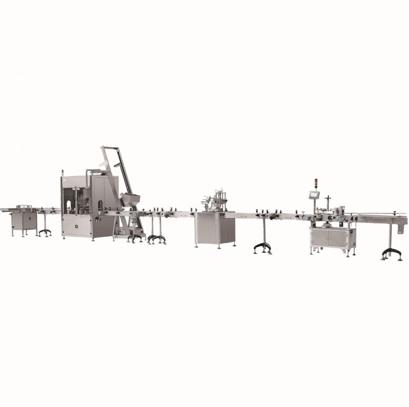 人工將空桶放到理瓶機(jī)內(nèi),理瓶后輸送到灌裝工位,六頭同時(shí)灌裝,灌裝頭插入瓶?jī)?nèi)打開進(jìn)入快速落料,當(dāng)達(dá)到慢進(jìn)料設(shè)定重量時(shí),自動(dòng)轉(zhuǎn)為慢速落料。當(dāng)重量達(dá)到目標(biāo)值時(shí)停止落料,此時(shí)儀表回皮顯示總重,成品桶自動(dòng)輸送到上蓋區(qū),上蓋完成后輸送到鎖蓋工位,鎖蓋完成后輸送到貼標(biāo)位置,灌裝機(jī)后輸送到裝箱工位,等待裝箱,整個(gè)動(dòng)作流程結(jié)束。