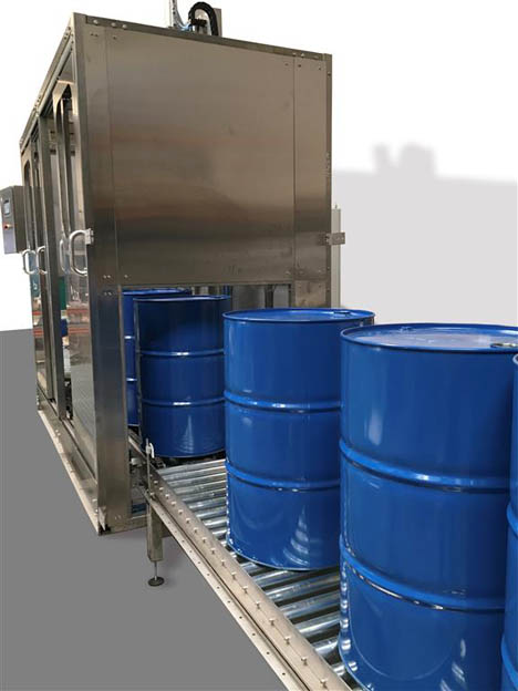 Construction and Working principle:The empty drums are fed from the infeed conveyor and reach the automatic filler via an accumulating roller conveyor. An assignment unit separates the single drums, t