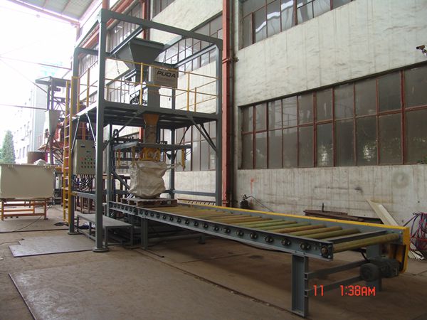 DLPX-25振動式供料包裝機采用電磁振動給料機給料,包裝開始前,用戶將包裝袋掛入自卸式掛袋機構,稱重平臺上升,到預定位置后,振動給料機供料高速運轉大給料開啟,物料直接流入到噸袋內,灌裝過程由稱重控制系統(tǒng)控制振動給料機進行快、中、慢三級給料,達到預設的重量值時振動給料機停止給料,設備自動松開夾袋和吊帶,自動輥道輸送系統(tǒng)將噸袋送至待運走位置由叉車叉走,人工上袋進行二次包裝。為了適應多種尺寸包裝袋,設備掛袋機構的高度可在1米至2米內進行任意調整,包裝過程中無粉塵溢出、稱量精度高、操作簡單以及維護方便等特點。