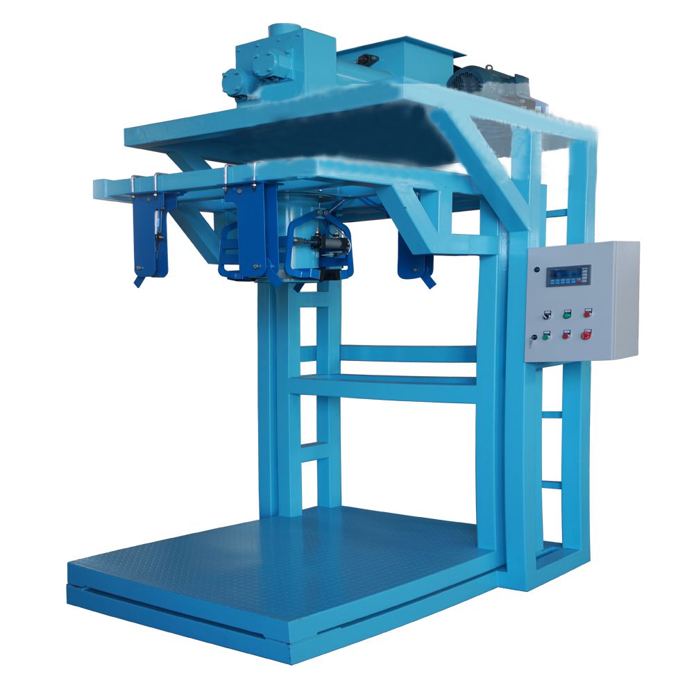 包裝秤采用毛重式的稱重計(jì)量方式,通過(guò)重力式給料,集裝袋懸掛在稱重平臺(tái)上,可對(duì)集裝袋進(jìn)行快速的物料充填。