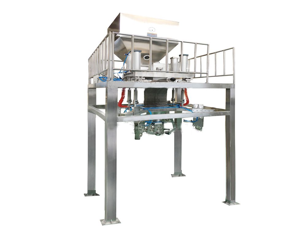 產品組成:粉末噸袋包裝機是由給料裝置、稱重傳感器、夾袋機構、鋼結構支架、輸送設備、控制柜(包含控制儀表)等組成。