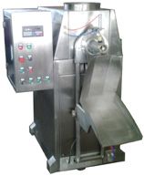 將閥口包裝袋套在加料嘴上,按動(dòng)“允加”按鈕,這時(shí)壓袋氣缸開始工作并壓住袋口,控制器將包裝袋重量自動(dòng)去除,破拱電機(jī)緩慢轉(zhuǎn)動(dòng),保證下料暢通。加料螺旋高速轉(zhuǎn)動(dòng)迅速將物料灌入袋中,隨袋中空氣一起溢出的粉塵通過吸塵器由除塵器吸走,振動(dòng)裝置同時(shí)啟動(dòng)將托盤上袋中物料振實(shí)充滿袋角。待加料快到設(shè)定值時(shí),加料螺旋進(jìn)行減速慢加,到設(shè)定值時(shí),加料停止。誤差<0.3%。這時(shí)壓袋氣缸松開袋口,將包裝袋放在皮帶輸送機(jī)上及時(shí)送出。