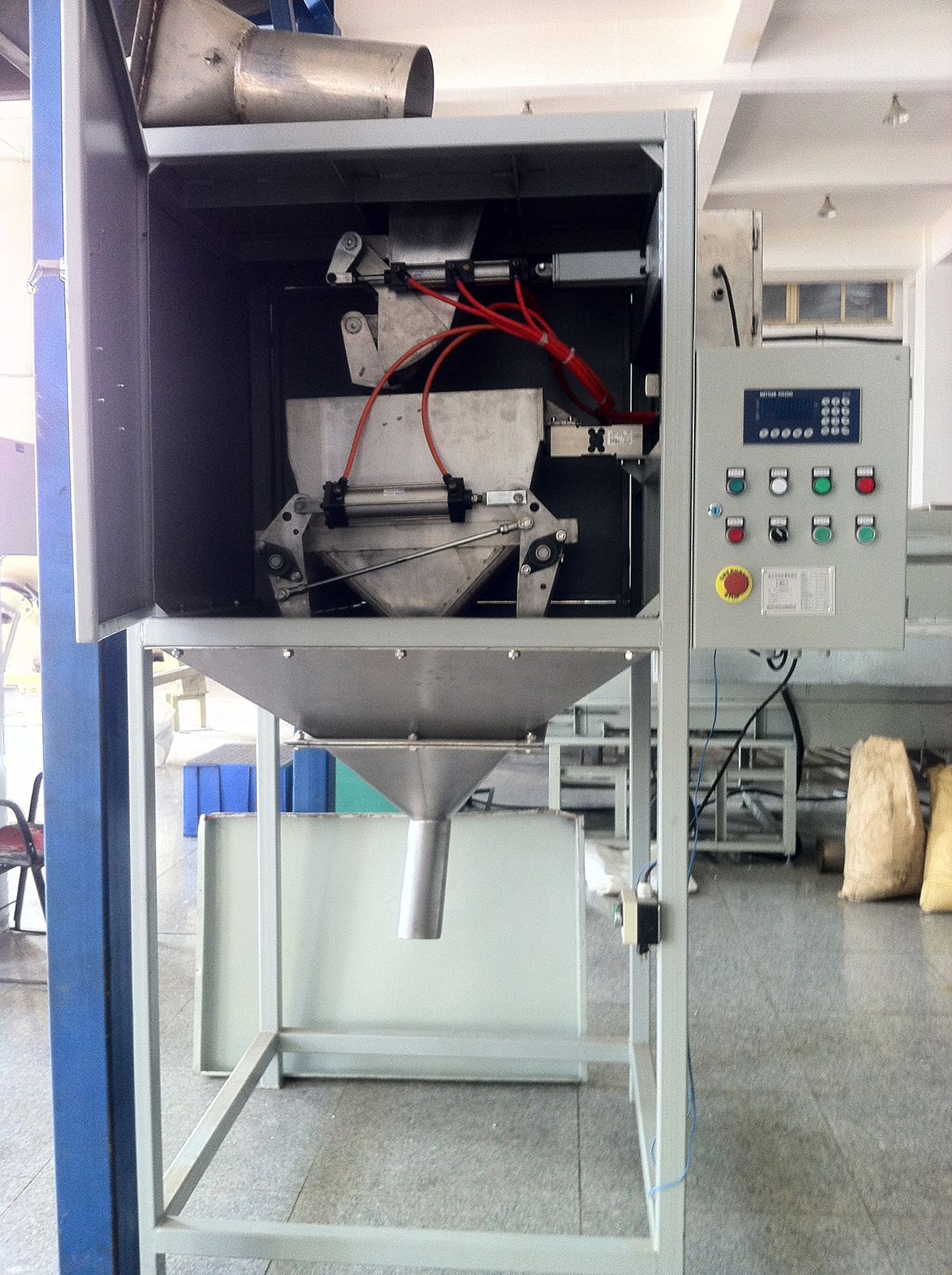 一、結構原理 DLPX-25閥口袋包裝機采用螺旋給料方式,控制方式采用變頻器無極調(diào)速給料形式,稱量支架位置配有震動電機,包裝過程中對物料進行加密、排氣、震實解決了流動性差、含氣量大的細粉及超細粉的包裝問題。適用于粉體、精粉、顆粒等物料的包裝。 二、技術特點 1. 采用螺旋式給料方式,包裝過程為物料加密排氣,解決粉體物料閥口袋包裝的問題。 1. 變頻