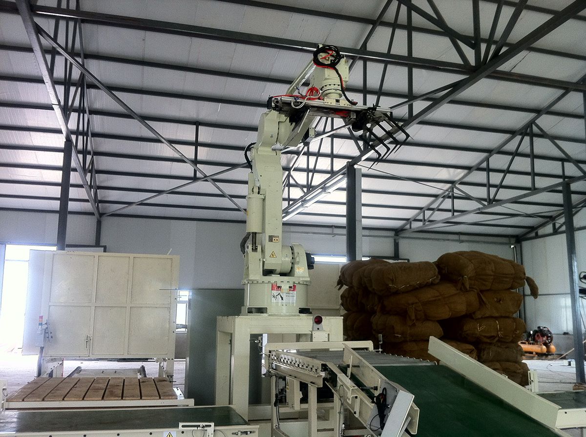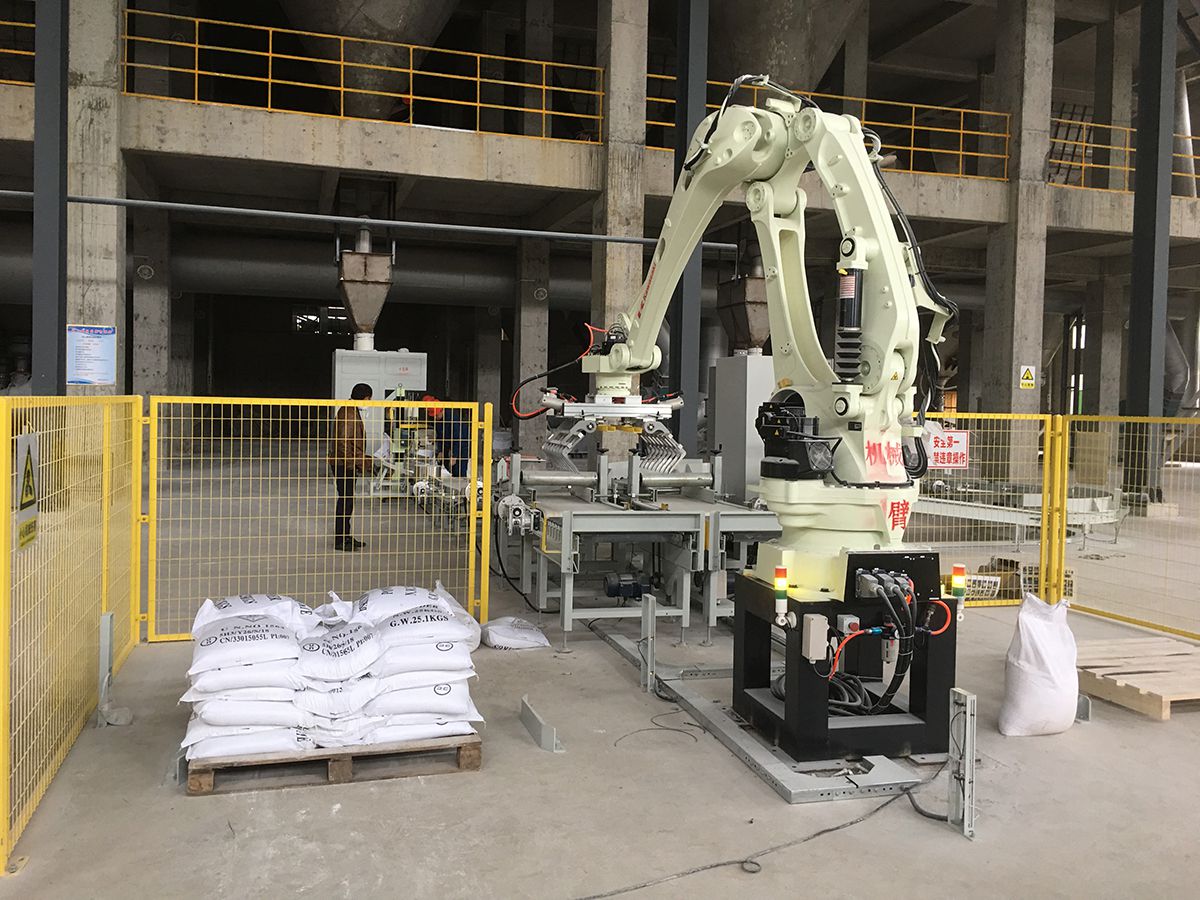 碼垛機(jī)器人是由全伺服控制的碼垛機(jī),所有動(dòng)作均由內(nèi)部伺服控制器來(lái)控制完成,無(wú)需由光電及位置傳感器發(fā)出信號(hào),杜絕了粉塵及人為對(duì)碼垛設(shè)備的影響。機(jī)械手碼垛機(jī)堆碼具有體積小、靈活性高、可靠性高 、精度高(可達(dá)毫米級(jí))等優(yōu)點(diǎn)。